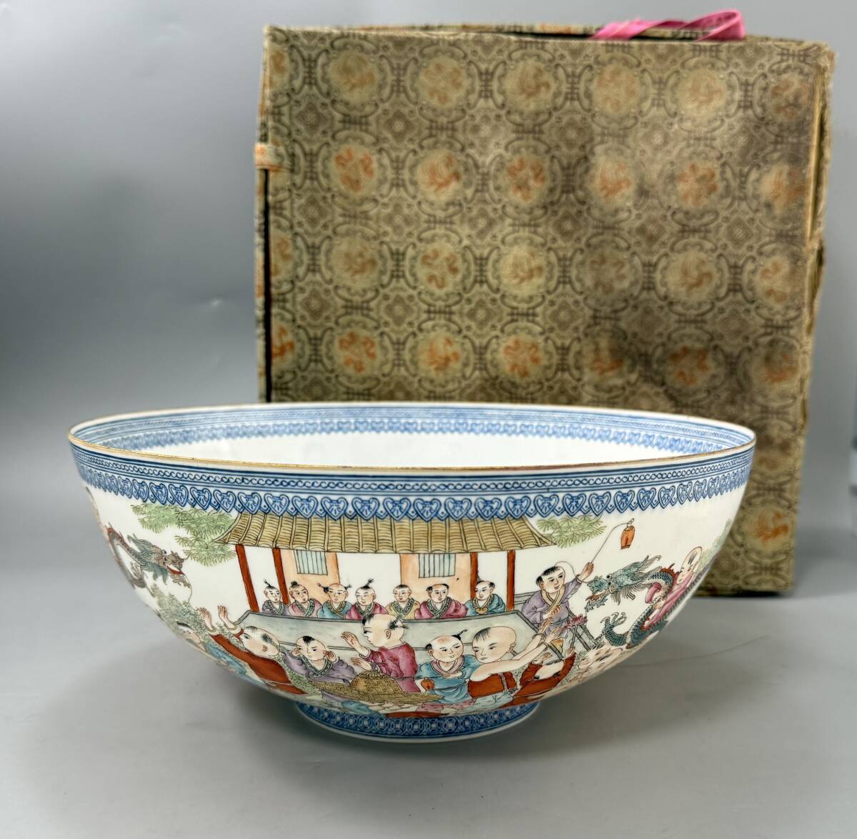 - 薄胎瓷 百子図 百子迎春図 人物図皿 大碗 超薄 瓷器 唐物 中国伝来 時代物 古美術 サイズ約 碗口直径26.5cm 高さ11.3cm 底直径10.3cm