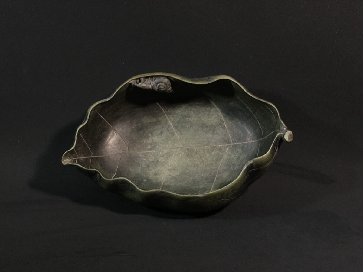 - 「古緑端石 葉形文房筆洗 壺公銘 清時代」手彫り 文房四宝 書道具 中国古美術 旧蔵出