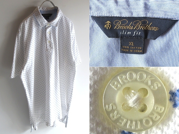- Brooks Brothers ブルックスブラザーズ 小花柄 フラワー柄 小紋柄 襟裏ストライプ コットン 鹿の子 ポロシャツ XL ホワイト 大きいサイズ
