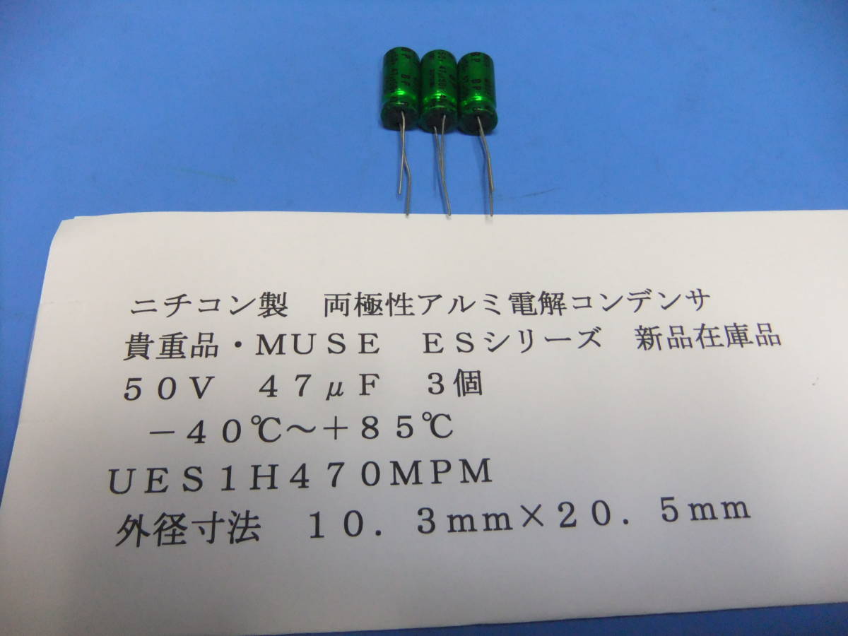- ニチコン製 両極性アルミ電解コンデンサ MUSE ESシリーズ 50V 47μF 85℃ 3個 新品在庫品 F