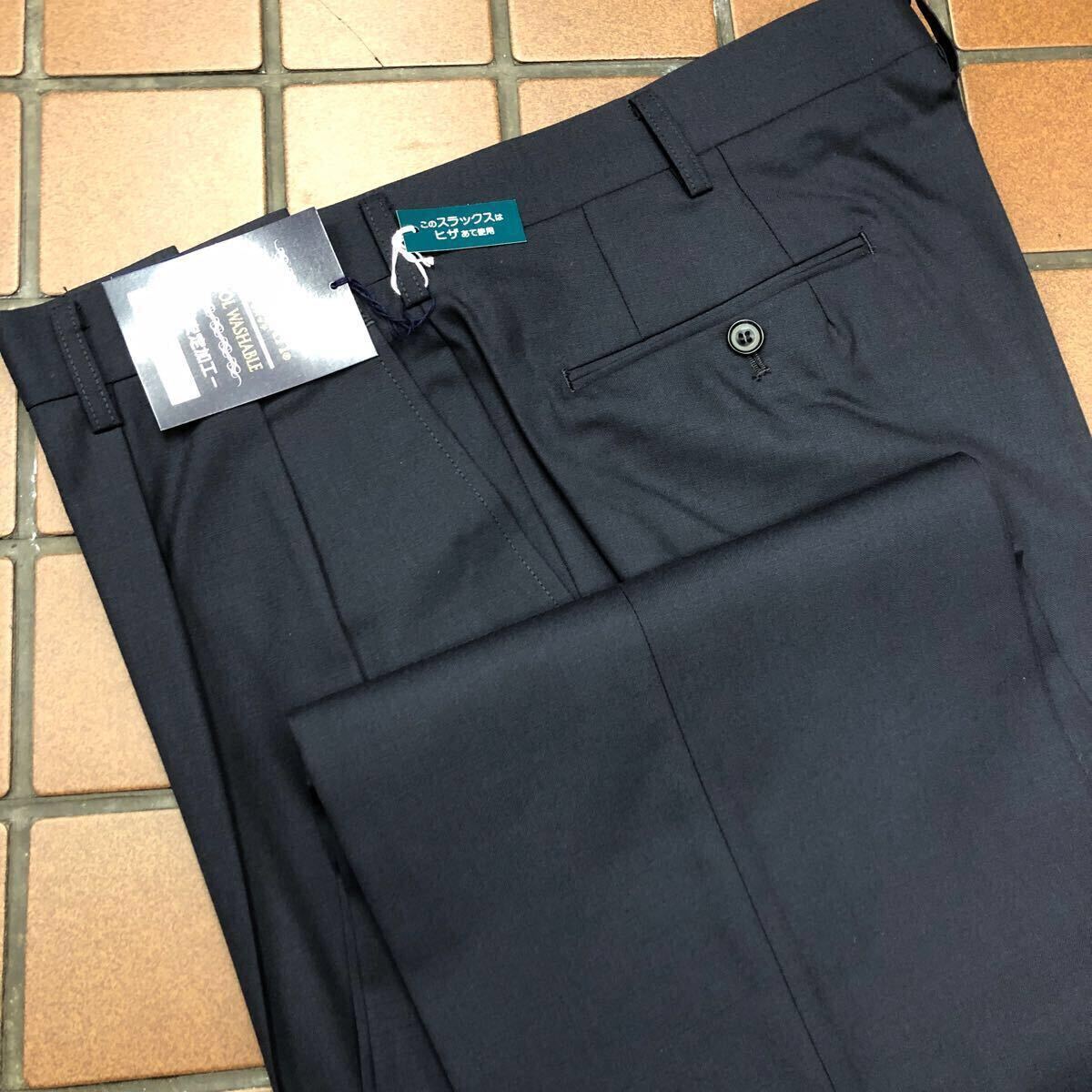 - 新品☆未使用 W82cm 春夏 ウール100% 2タック ネイビー系 メンズスラックス カジュアルパンツ メンズパンツ ゴルフウェア GOLFパンツ