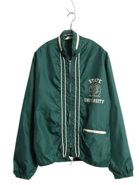 - 60s USA製 ランタグ チャンピオン ナイロン ジャケット メンズ M 古着 ヴィンテージ カレッジ プリント ワンポイント 薄手 レーシング 緑