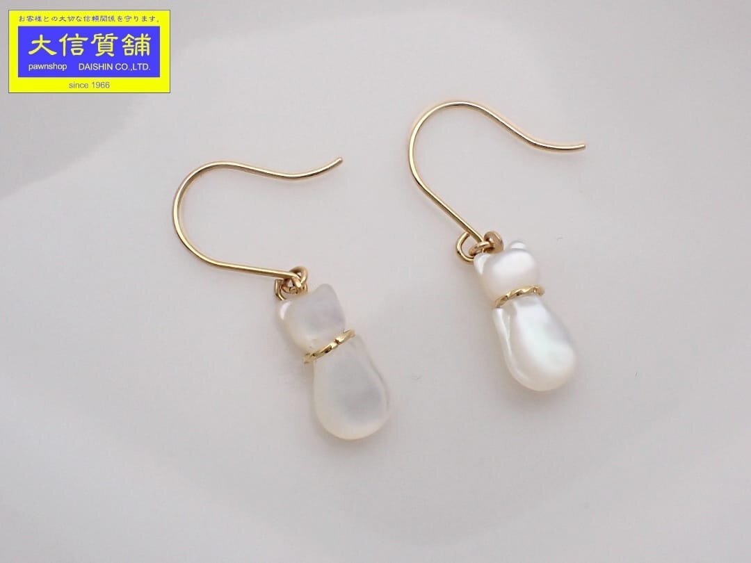 > K18 イエローゴールド フックピアス シェル 白蝶貝 キャットモチーフ 0.66g 中古A- 【送料無料】 C-9161