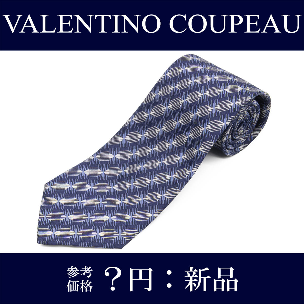 > 送料無料 ヴァレンティノクーポー ネクタイ 新品 シルク ネイビーブルー グレー 水色 四角 スクエア 幾何学模様 ブランド おしゃれ N670
