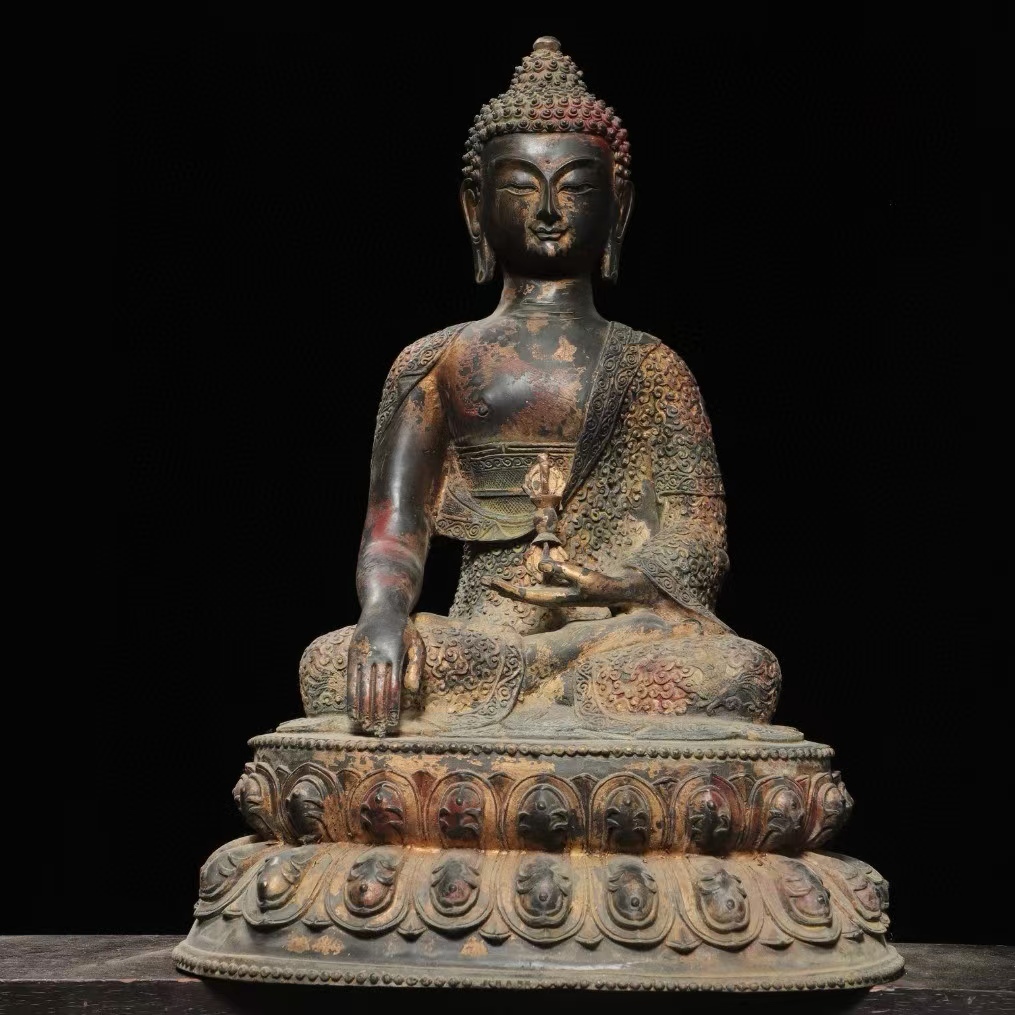- 仏像 清代 旧蔵 大判 47cm 古銅蒔絵【宝来仏・如来仏】仏像 造像 銅製 銅琉金 仏教 唐物 收蔵品 時代物 古美術 古置物 希少珍品 供養品5.31