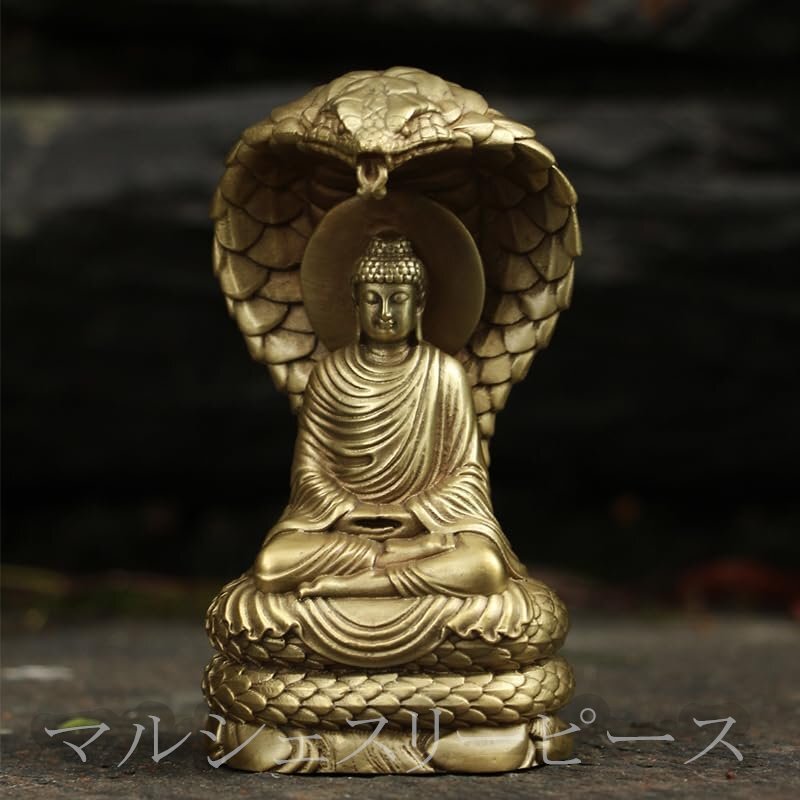 - 仏像 釈迦如来 座像 ムチリンダ龍王光背 蛇座 お釈迦様 座釈迦 真鍮 材質 総高11.5cm