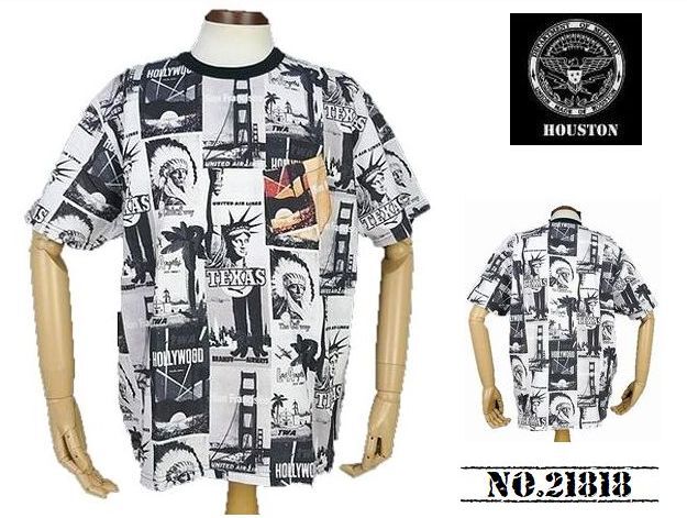 > 【送料無料 63%OFF】HOUSTON ヒューストン 総柄プリント ポケットTシャツ 「USA TRAVEL」 NO.21818 WHITE_XLサイズ