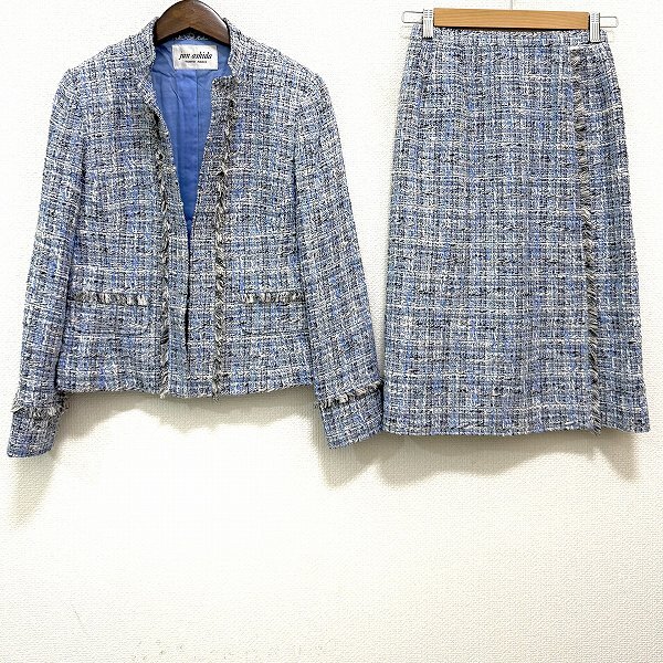 - #anc ジュンアシダ junashida スカートスーツ セットアップ ツーピース 11 ツイード ノーカラー 麻混 レディース [945063]