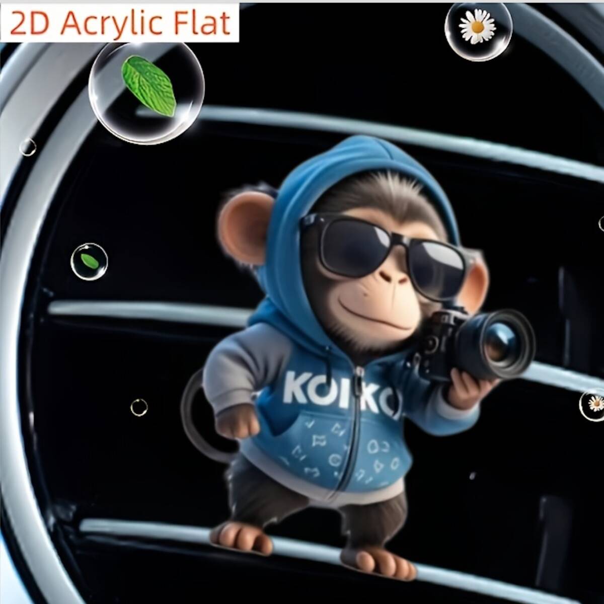 - 芳香剤 車用 猿のカメラマン エアコン アニマル 吹き出し口 アクリル クリップ おもしろ 6cm 平面 2D 香り付き サル 二足歩行 動物 t5995