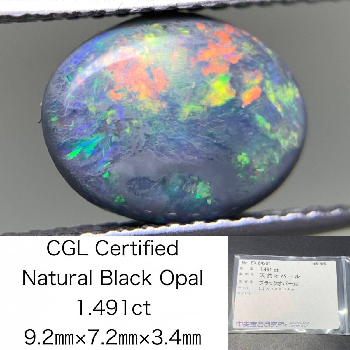 > ブラックオパール 天然 1.491ct 中央宝石ソーティング付き 9.2×7.2×3.4 天然 ルース( 裸石 ) 5013Y