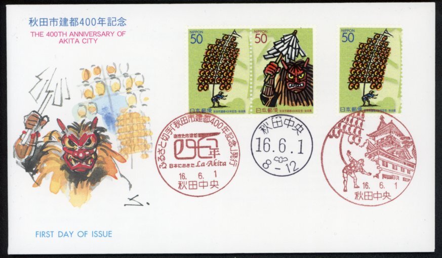 - 0481 【FDC】ふるさと 秋田県「秋田市建都400年記念」」[秋田中央/16.6.1/郵便文化振興協会]