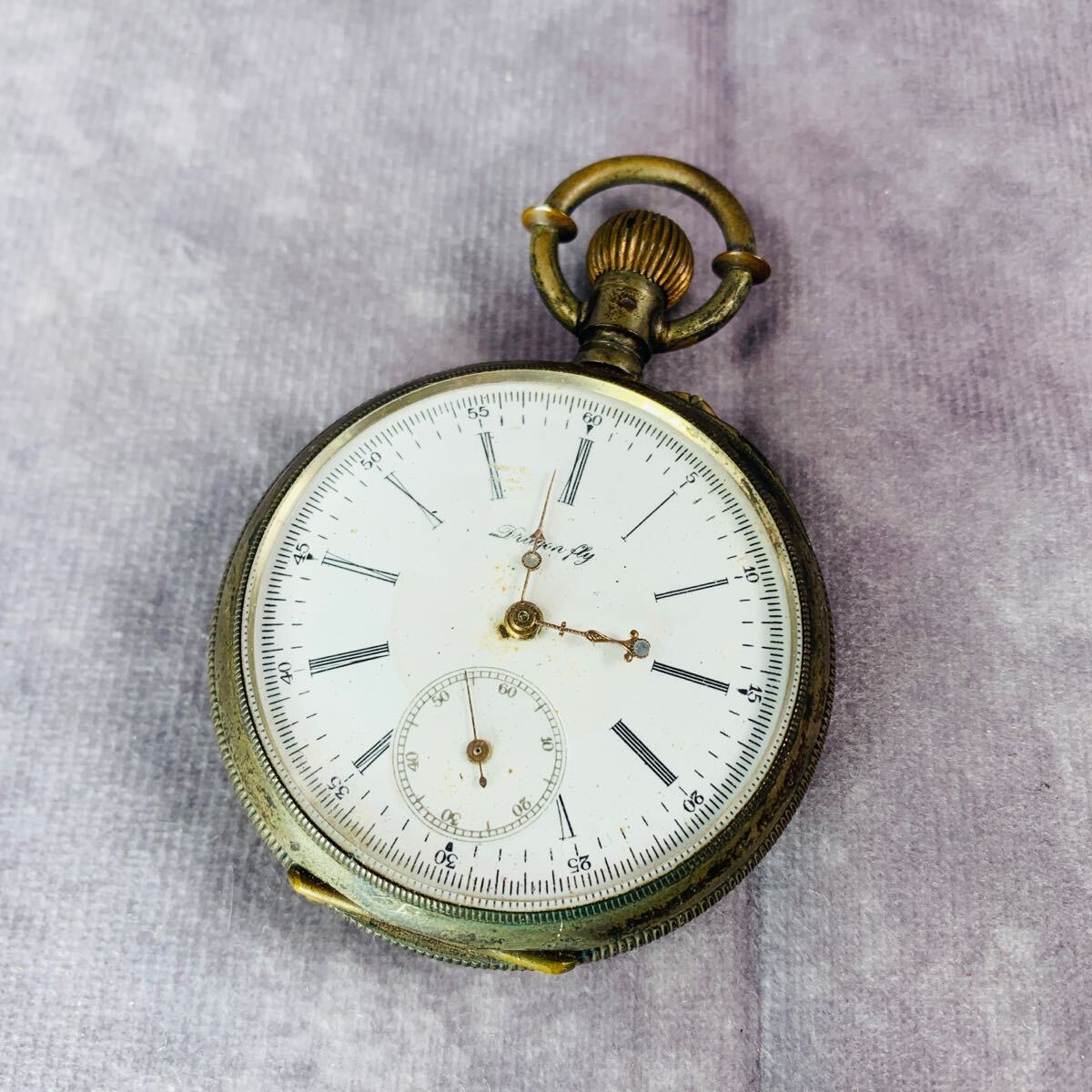 - アンティーク 懐中時計 手巻き 銀製 刻印 シルバー 裏蓋 ドラゴンフライ トンボ ホールマーク 骨董 時計