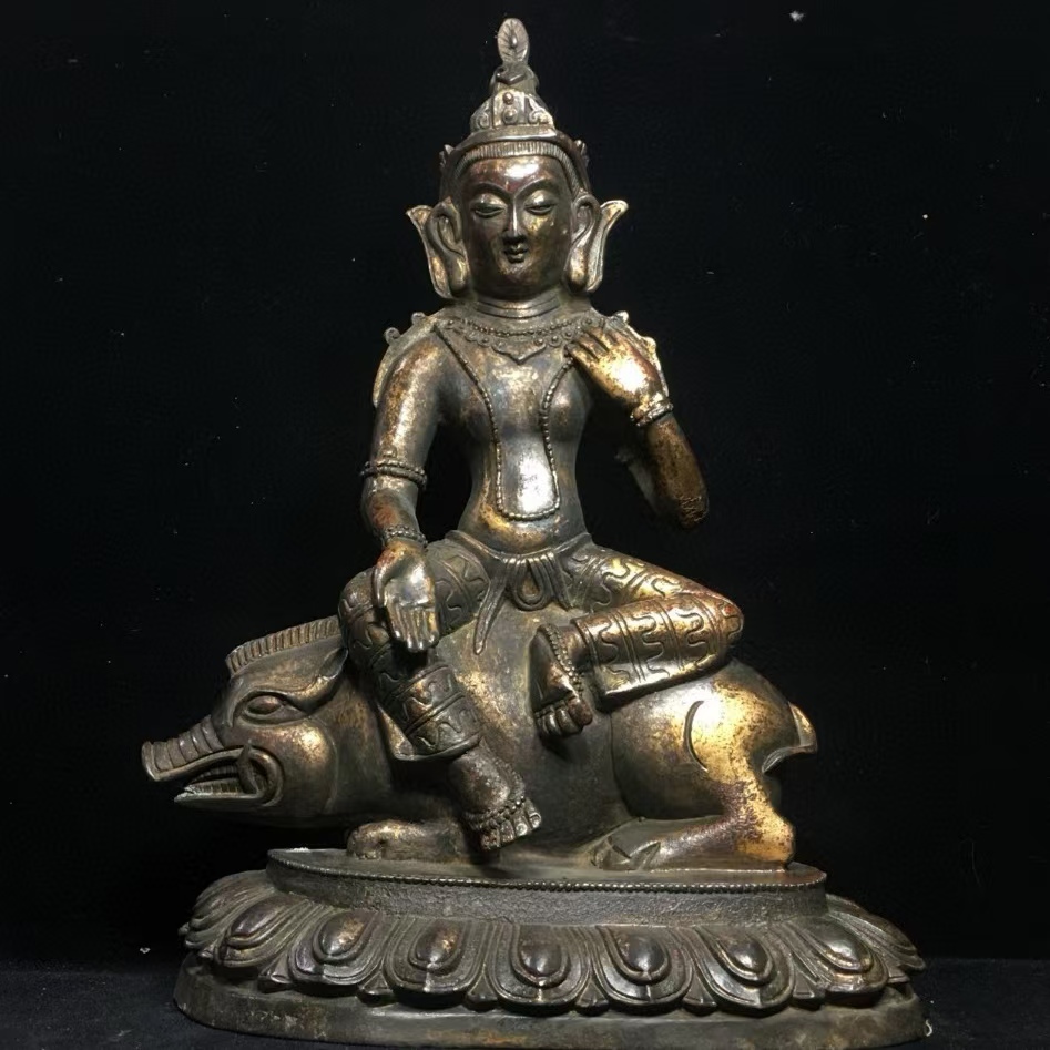- 仏像 清代 秘蔵 蔵伝 古銅金 度母菩薩 仏像 文房具 仏教 銅製 銅琉金 唐物 收蔵品 時代物 古美術 古置物 希少珍品 供養品 6.3