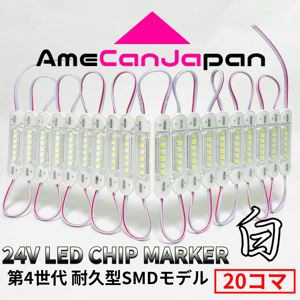 > 第4世代 24V チップマーカー タイヤ灯 SMDチップモデル 密閉設計トラック用 LED マーカーランプ・シャーシマーカー 白 20コマ