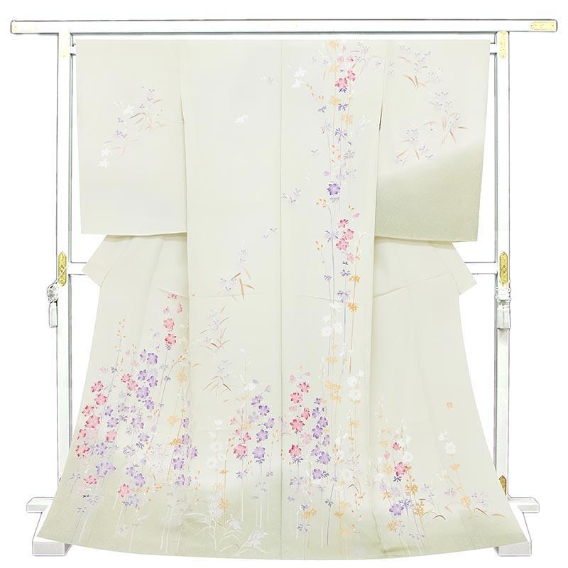 > ※記念感謝祭【仕立無料】日本図案家協会会員優秀図☆春秋花京友禅工芸手描き染特撰訪問着落款入(10011618)