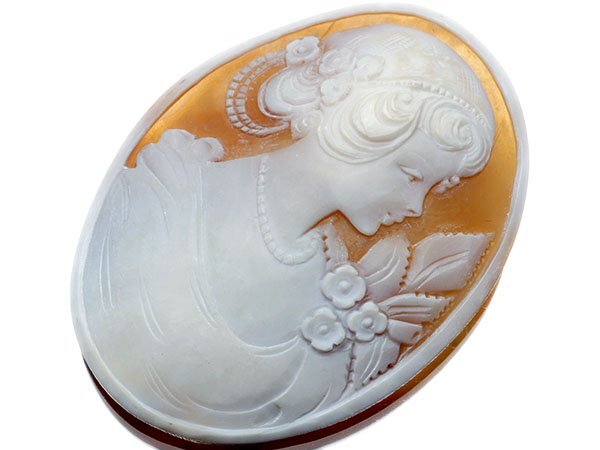 - 【ジュエリー極】作家品 裏面サイン有 ネックレスと髪飾りの女性像 高級シェルカメオルース 65.0mm×49.0mm a2123v【送料無料】