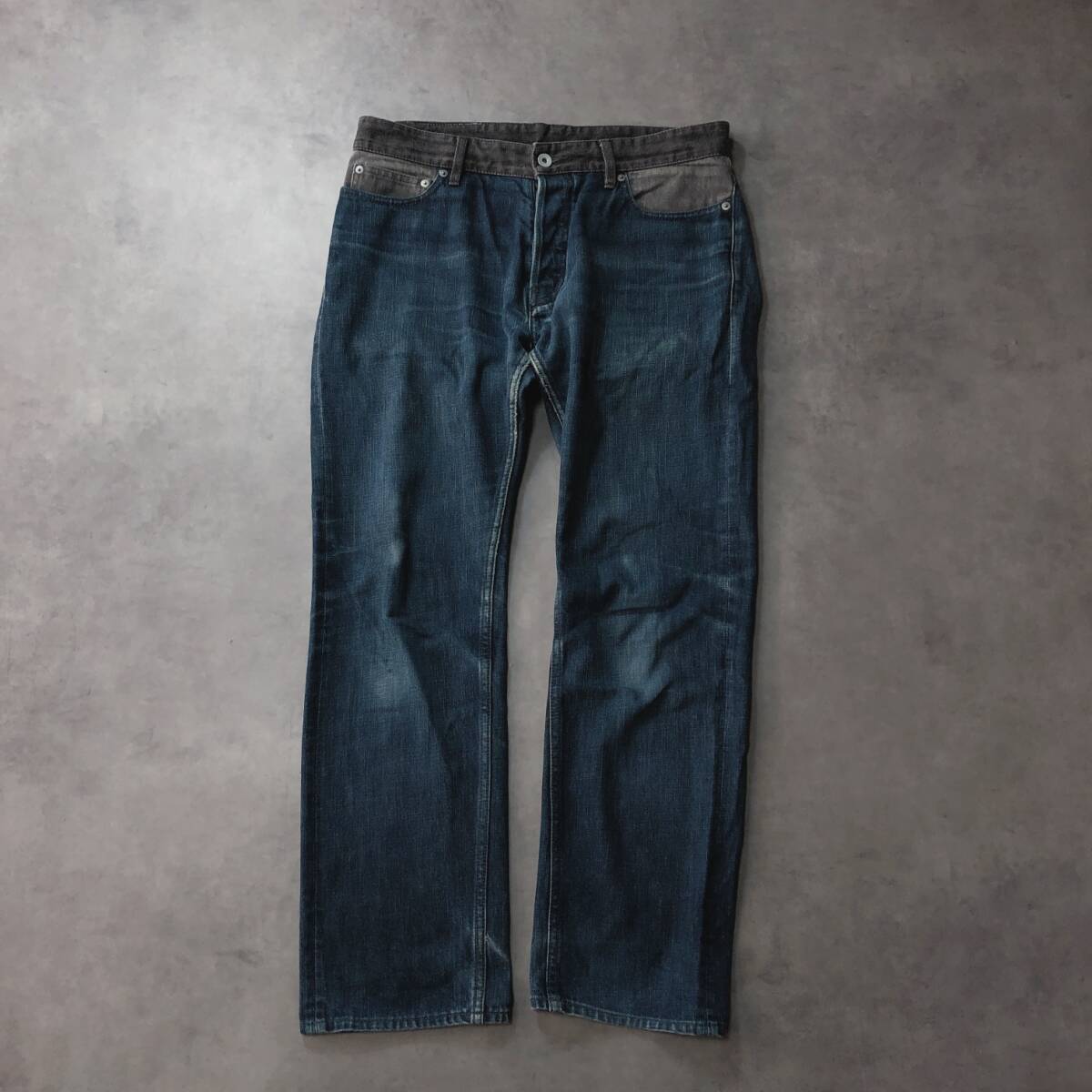 - HQ028◇lideal : 切替デニムパンツ◇w32◇ブラックデニム/インディゴブルー リデアル