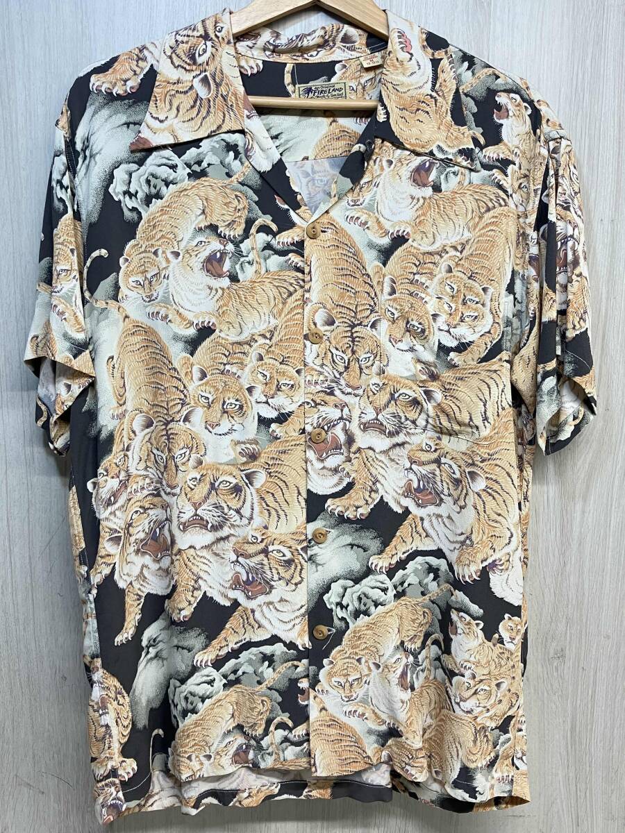 - 東洋エンタープライズ FIRELAND 百虎 90s アロハシャツ レーヨン ヴィンテージ ファイヤーランド 開襟 メンズ M 総柄 タイガー M32929