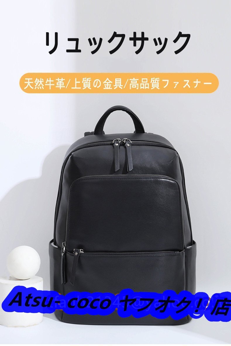 - リュック メンズ 本革 牛革 PC収納 A4 レザー 防水 大容量 リュックサック バックパック ビジネスリュック 人気 通勤通学 出張旅行ブラック
