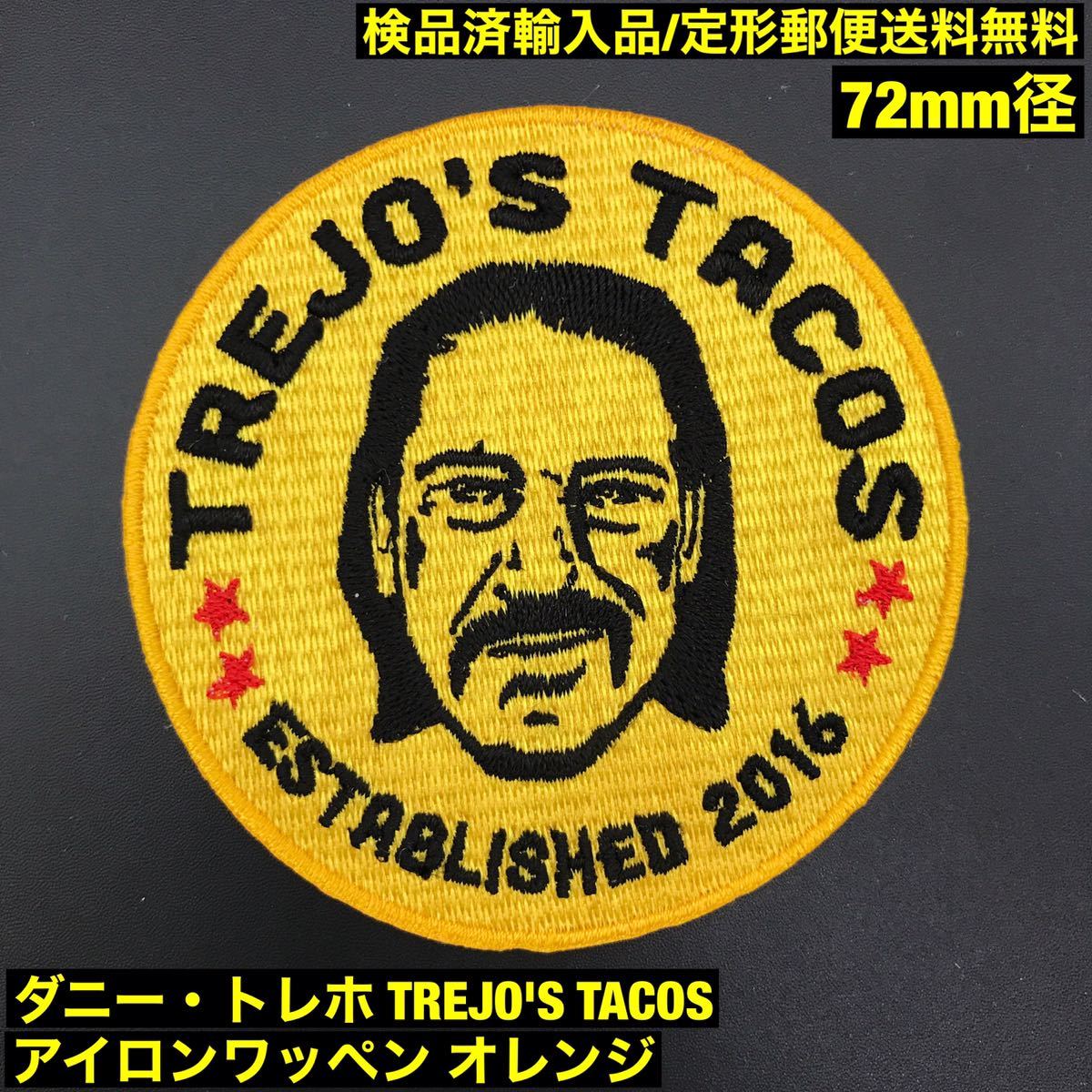 > オレンジ系 72mm径 - TOREJO'S TACOS トレホズタコス アイロンワッペン - ダニー・トレホ DANNY TREJO sonntagpatches 定形郵便送料無料