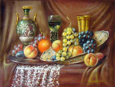 - ヨーロッパ絵画 肉筆油絵 (額縁付きで納品対応可) サイズF6号 レインプレヒト作 「静物画」