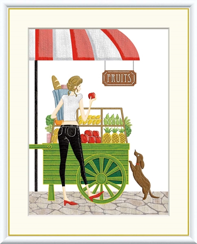 > 高精細デジタル額装版画 現代アート Rimi 素敵なひと時 佐久間 莉美 (さくま りみ) 「 フルーツショップ 」 サイズ F8号