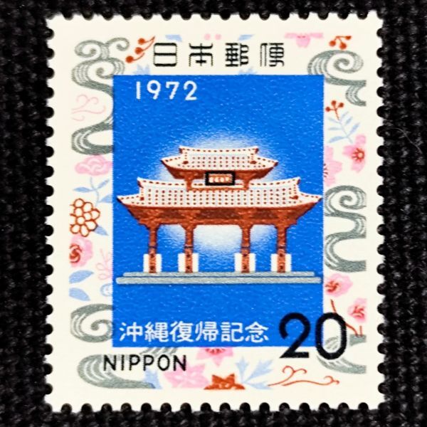 - [25060330]【沖縄復帰記念】単片「守礼門と紅型」20円 1972年発行 美品