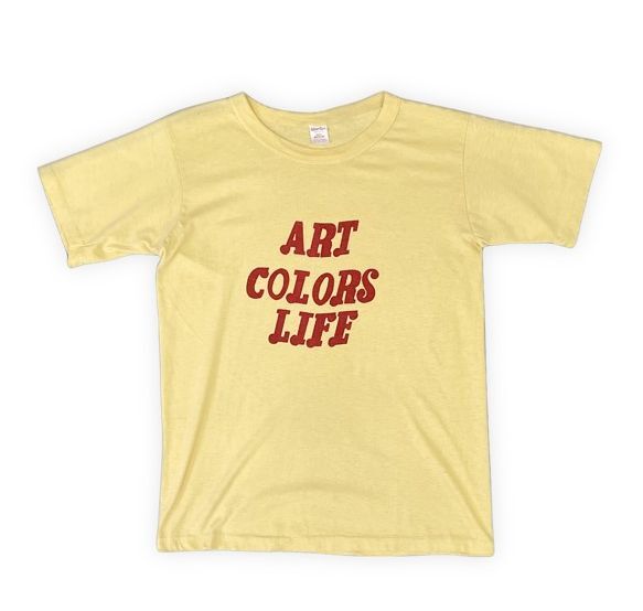 > 70’s 米国製 MADE IN USA RN51725 AdverTee's ビンテージ メッセージ Tシャツ ART COLORS LIFE 染み込みプリント イエロー M [la-1319]