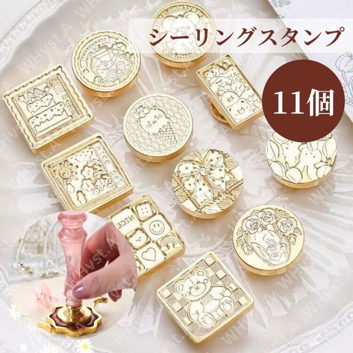 - シーリングスタンプヘッド 11個セット ゴールド 花柄 くま まとめ売り