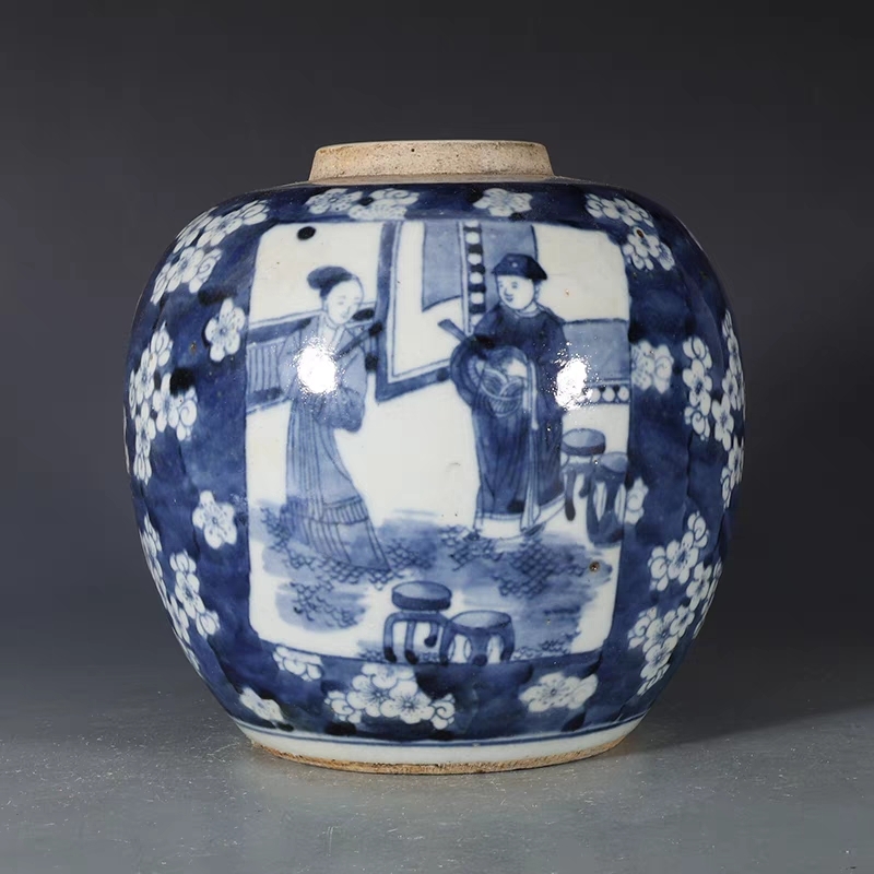 - 清時代 康熙年製款 古陶磁器 青花 人物故事紋 罐 罐子 文案置物 磁器 擺件 時代物 古董品 骨董 旧家蔵出 唐物 中国古玩 古美術品