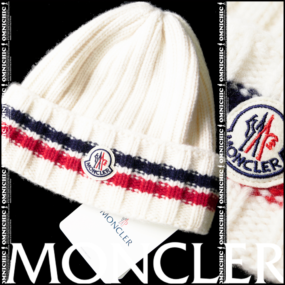 > ■新品/安心の国内正規品【MONCLER】モンクレール清潔感溢れるトリコロールワッペンロゴ肉厚ウールリブニットキャップ/BERRETTO TRICOT