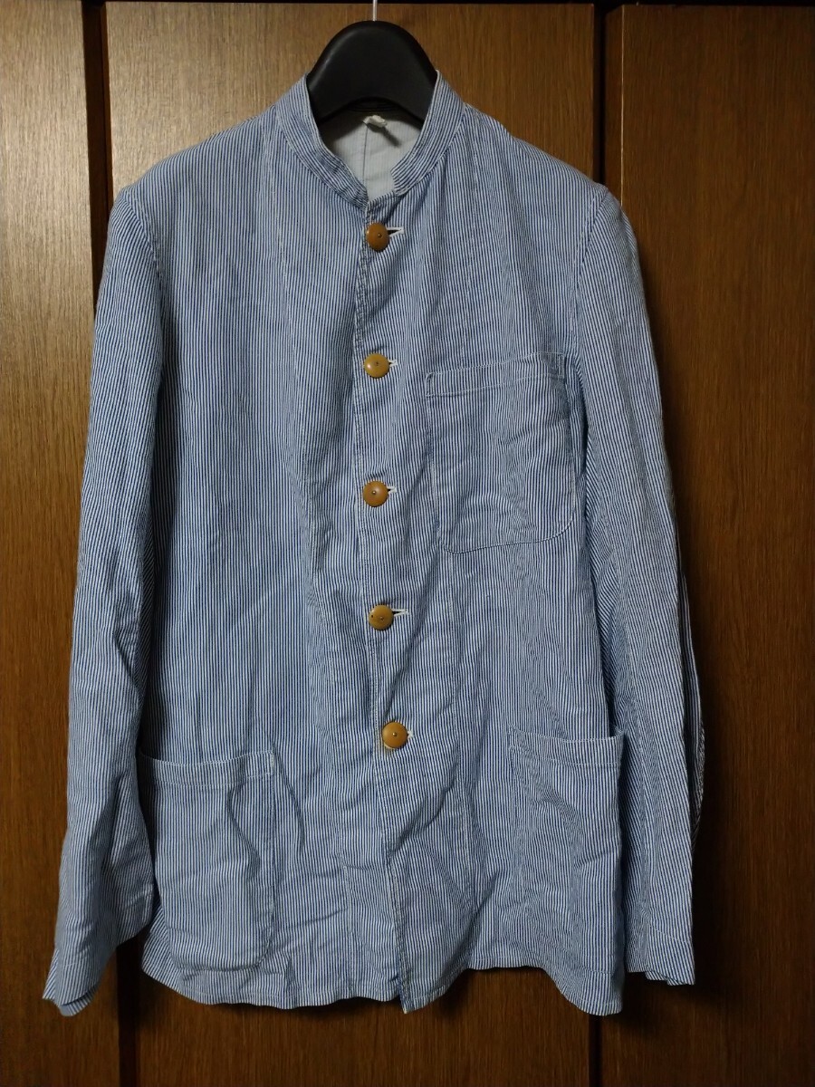 - 40s イギリス製 ヴィンテージ ビンテージ インディゴ プリント ストライプ カバーオール ワークジャケット