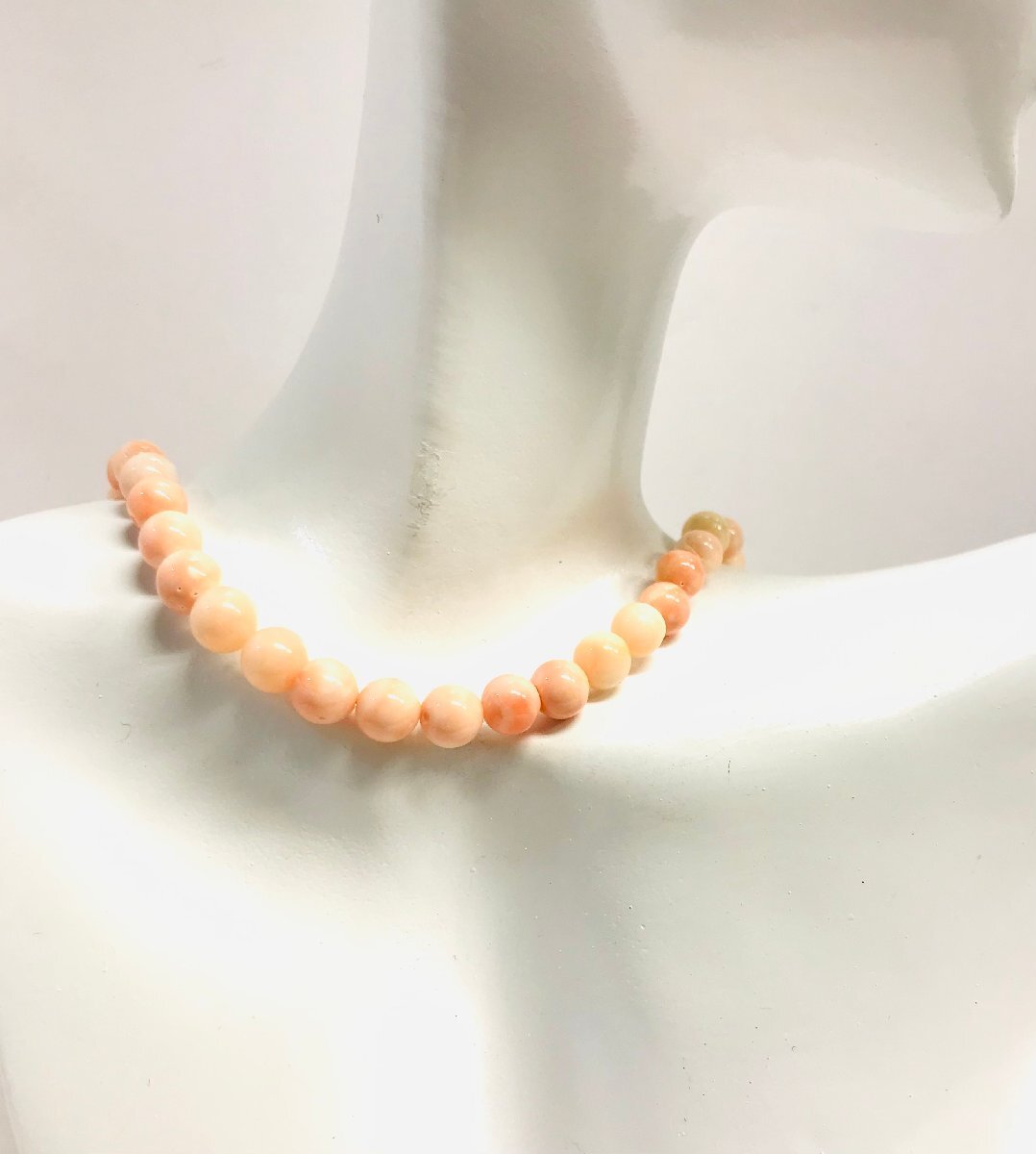 - qoj.YQL01 SILVE サンゴ ピンク ネックレス 3.0mm~6.0mm玉