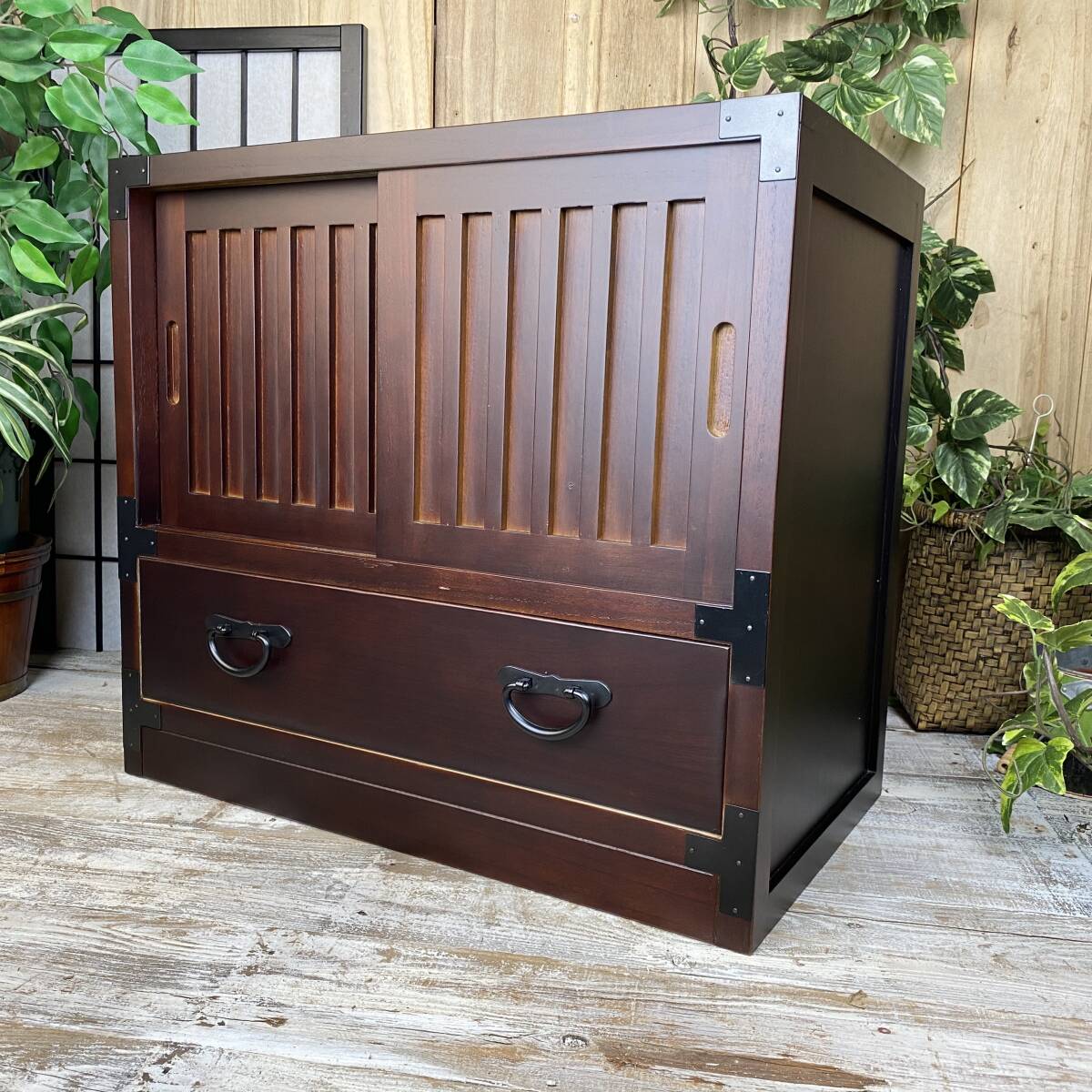 - 送料無料、民芸家具和引き戸チェストタンス、収納箪笥桐材無垢、小物収納木製桐箪笥、モダン多引き出し、スライド扉和室チェスト、飾台