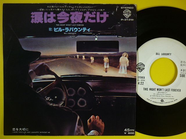 > EP◆ビル・ラバウンティ/涙は今夜だけ/恋を大切にP-313W【白ラベル】◆Bill Labounty/This Night Won't Last Forever,AORアダルト,レコード