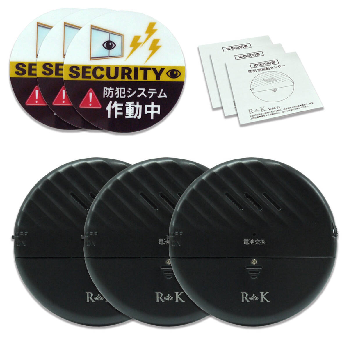 - ★ 防犯ブザー 窓 防犯アラーム ブラック 3個セット ドア 衝撃 センサー ステッカー 説明書付 超薄型 振動調整可能 125dB