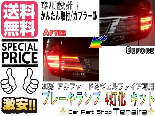 > 30系 アルファード・ヴェルファイア 前期 全グレード対応 かんたん取付 ブレーキランプ 4灯化キット ドレスアップ カプラーON 送料無料/6