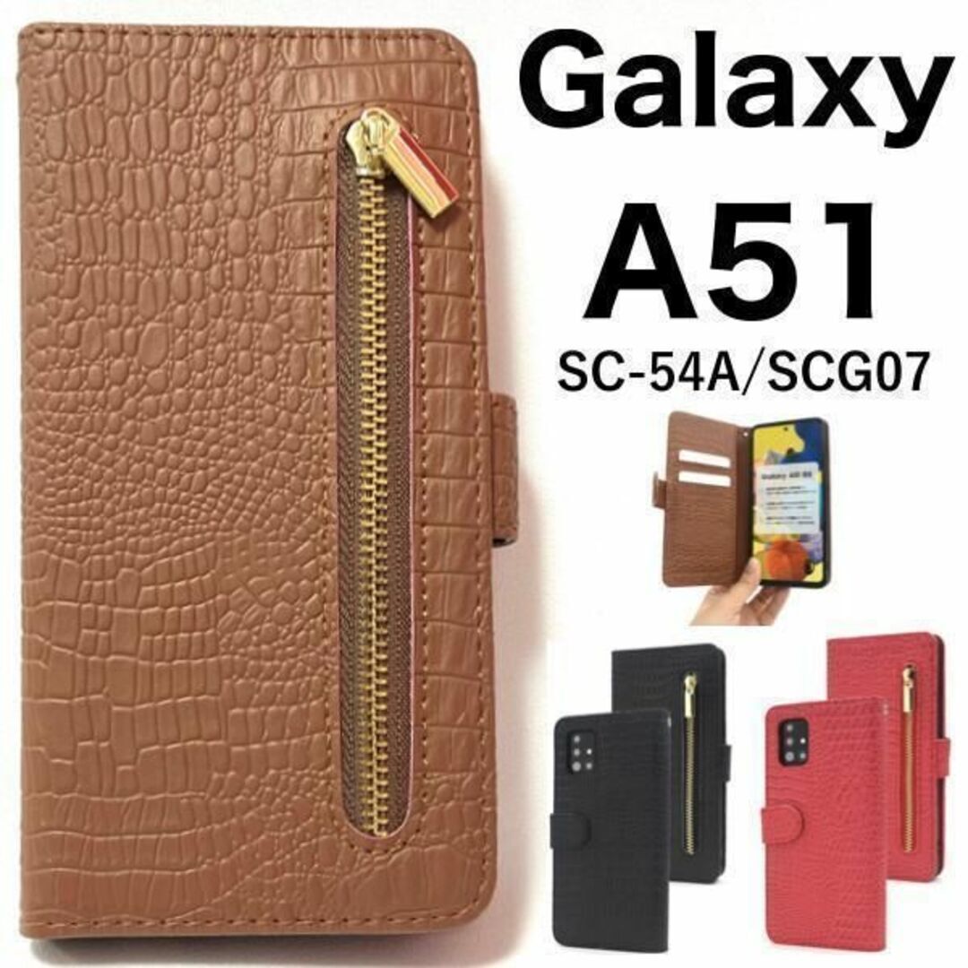 - Galaxy A51 5G SC-54A/SCG07 ファスナー 手帳型ケース/ギャラクシースマホケース