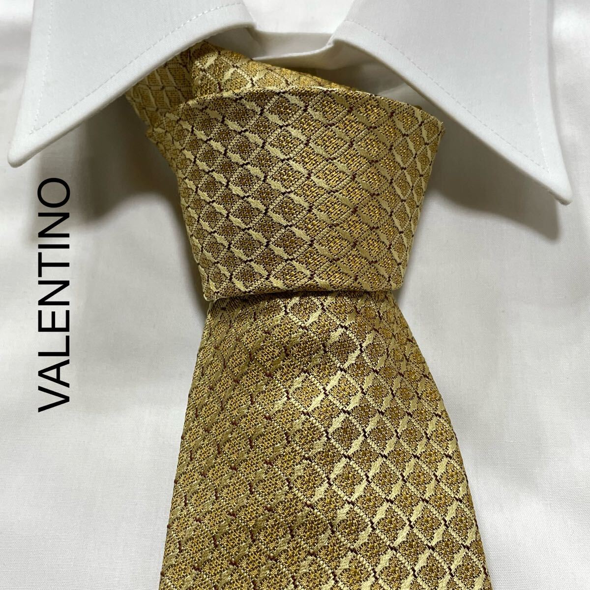 - VALENTINO ヴァレンティノ ロゴ パターン柄 ジャガード シルク ネクタイ イタリア製 イエロー TG1547