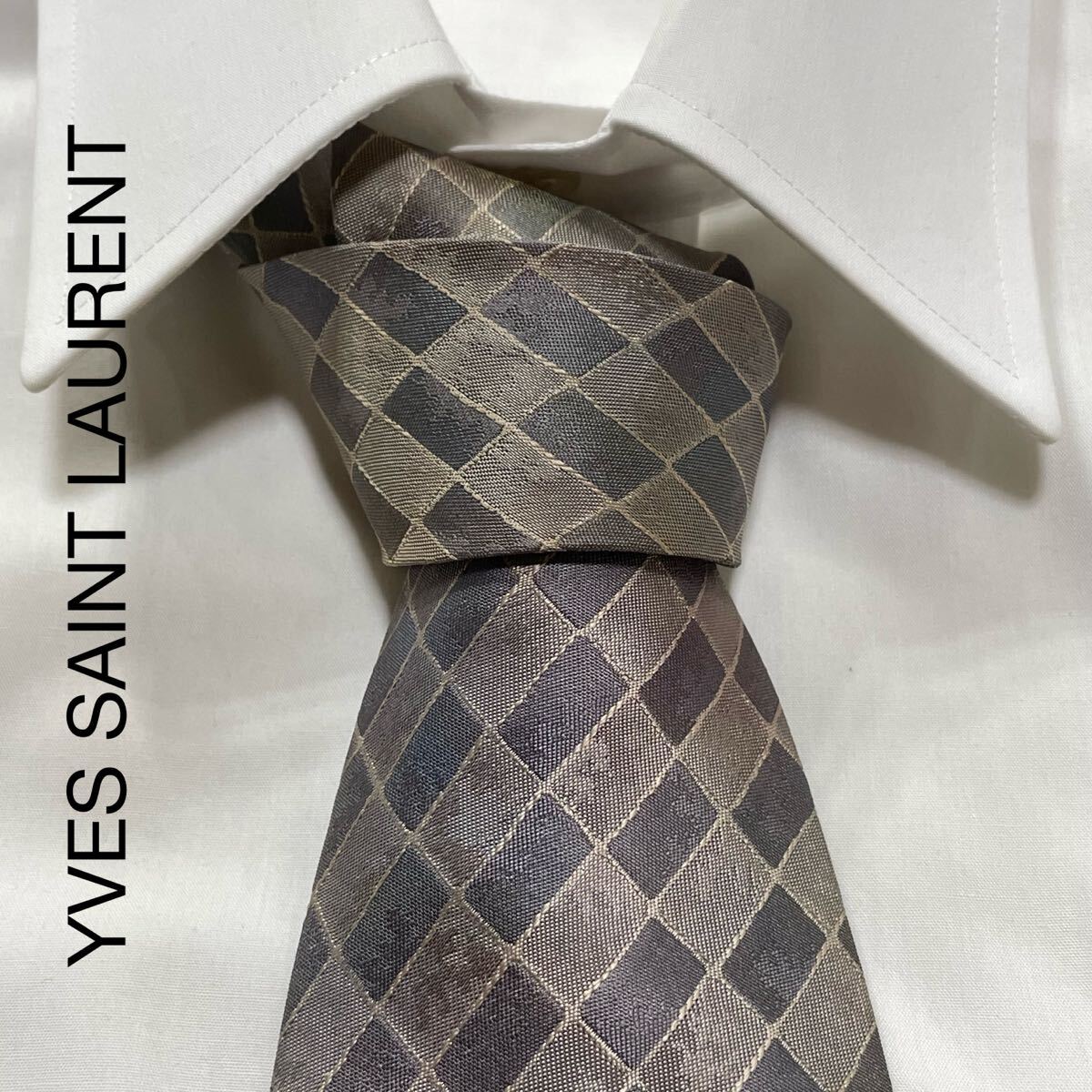 - YVES SAINT LAURENT イヴサンローラン パターン柄 ジャガード シルク ネクタイ パープル系 TG1562