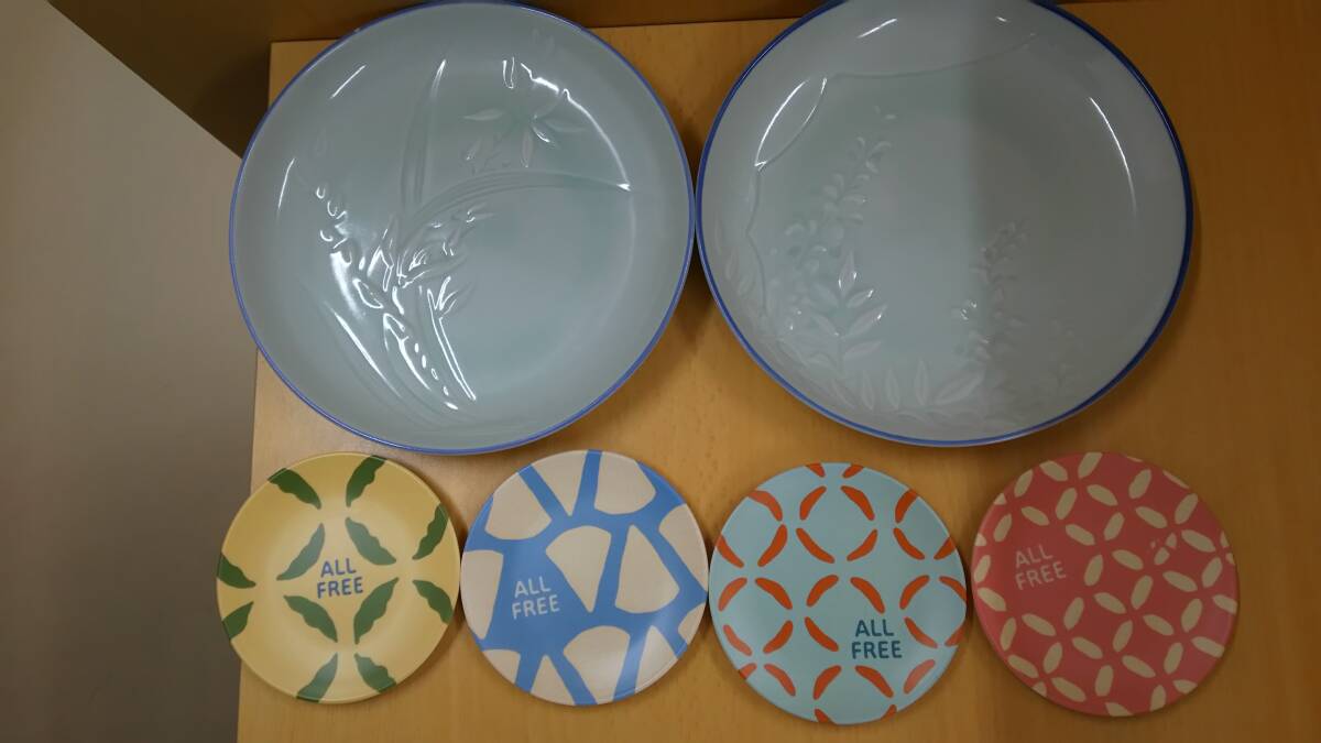 - 【菊水-098】たち吉/橘/青風花/ペア和皿/オールフリー/オリジナル/バンブーメラミン小皿/4枚(yu)