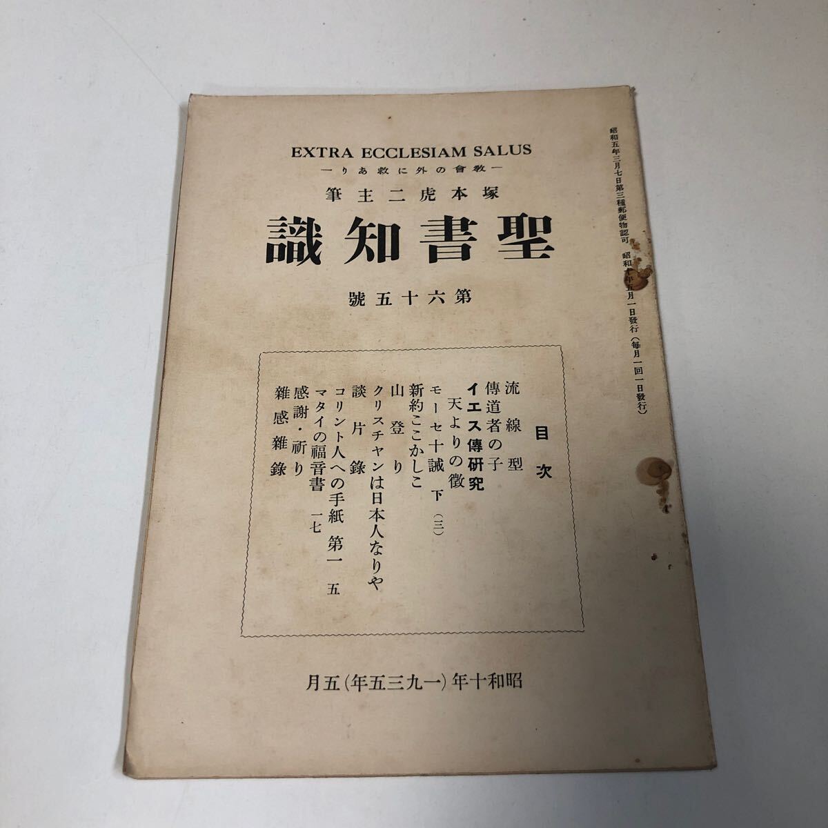 - M5i-019 聖書知識 塚本虎二 第六十五號 昭和10年 昭和初期 1935年 イエスキリスト キリスト教 65号