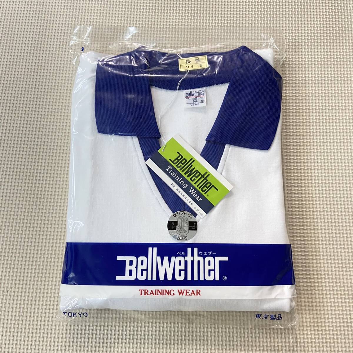 > (M)001 新品【Bell wether】ベルウェザー サイズ 94-5 L (170) /長袖/Vネック/白×青紺/トレシャツ/中学生/高校生/体操着/運動着/ジャージ