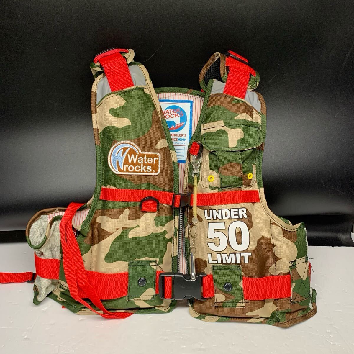 - 1657 ライフジャケット 子ども用 Mサイズ Water rocks 迷彩 50kg未満 ウォーターロックス ※汚れ有り