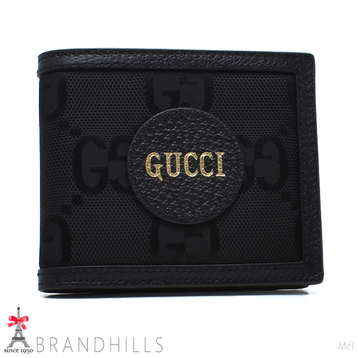 > グッチ 財布 二つ折り 札入れ メンズ グッチ オフ ザ グリット GGナイロン レザー ブラック 625573 GUCCI ほぼ未使用