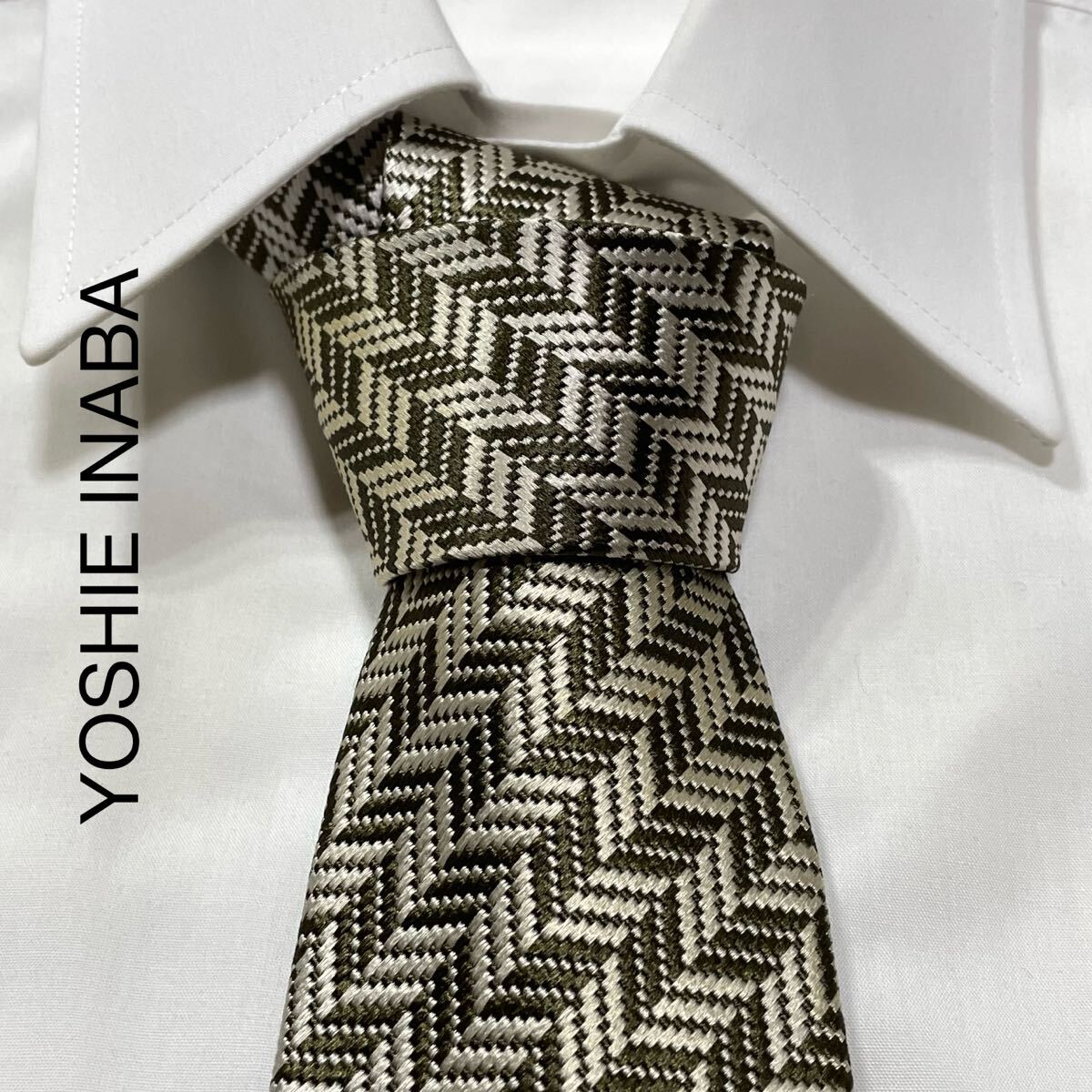 - YOSHIE INABA ヨシエイナバ ヘリンボーン ジャガード シルク ネクタイ 日本製 ベージュ カーキ TG1686