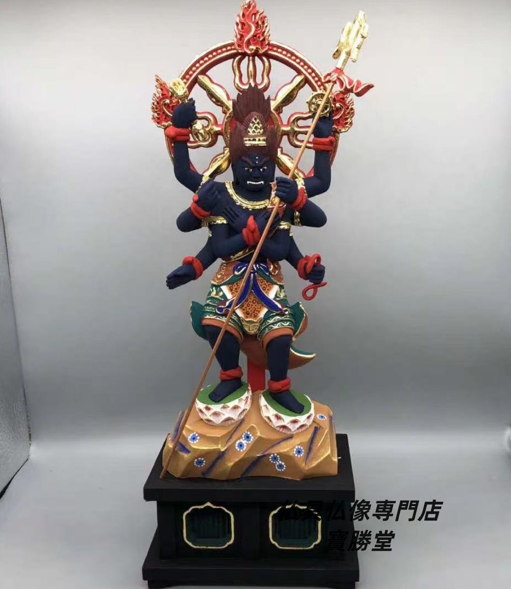 - 木彫仏像 仏教美術 精密細工 仏師で仕上げ品 総檜材 彩色 彩繪 切金 軍茶利明王像 高さ35cm【送料無料】【仏具仏像専門店寶勝堂】