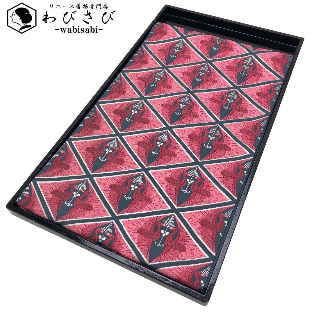 - 袋帯 西陣 唐織 向かい鳥菱模様 銀糸 韓藍色 O-5169 着物 きもの kimono 和服 和装 中古 リサイクル着物 【送料無料】