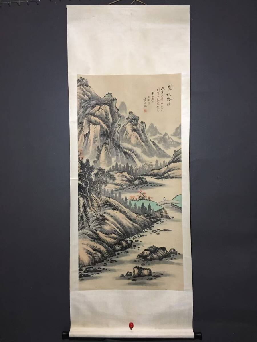 - 旧藏 中国古画 文殊明 四尺中堂画 山水画 純手描き画 水墨画 古美術品 時代物 中国古玩 骨董品 唐物 宣紙 5.18