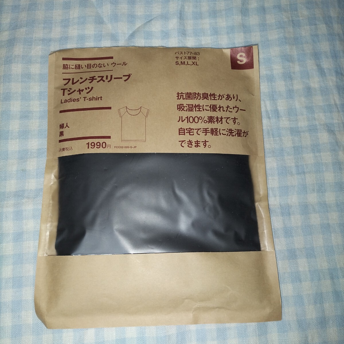 - 新品!無印の脇に縫い目のないウールのフレンチスリーブTシャツ S レディース 黒